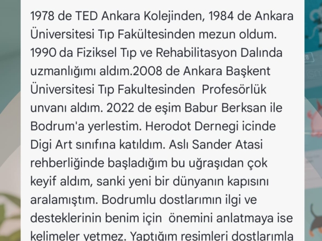 BODTÜM dostlarından Prof. Dr. Nur Berksan’ın digi art sergisi 24 Mart 2024 Pazar günü saat 15:00 te Dernek Merkezimizde açıldı. Bir çok üyemizin ve BODTÜM dostlarının katıldığı sergiye ilgi yoğundu. Sergiyi gezmek isteyen dostlarımızı her gün 12:00-17:00 arasında dernek merkezimize bekliyoruz.