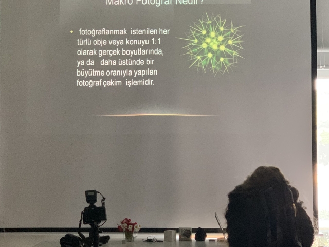 Fotoğraf sanatçısı Ferzan Uğurdağ ve eşi Zeynep Uğurdağ’ın katıldığı söyleşide makro fotoğrafçılık için gerekli tüm ekipmanları tanıdık ve gördük. Çok özel bir ilgi alanı olduğu için kalabalık değildik, ancak Ferzan hocanın sunumunda ilgilenen dostlarımız için çok aydınlatıcı bilgiler vardı.