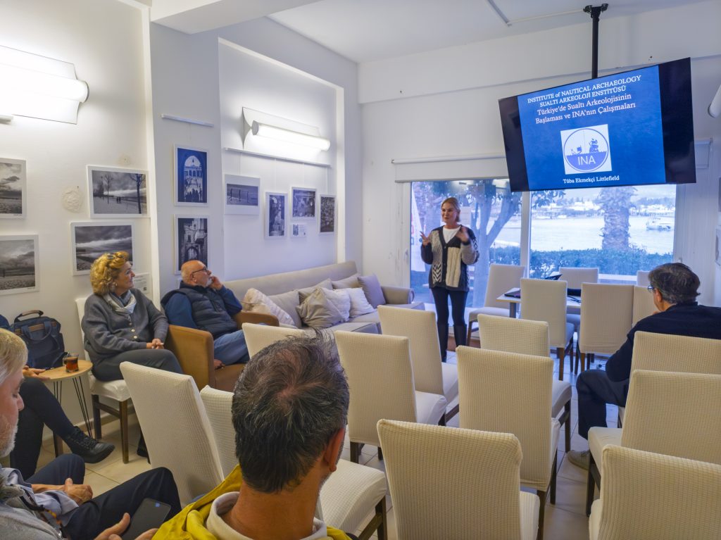 INA Direktörü Tuba Ekmekçi Littlefield’den , 22 Ocak Perşembe günü Dernek Merkezimizde gerçekleştirdiği tanıtım sunumunda, kurumun kuruluş öyküsünü, dünya çapında yürütülen gemi batığı araştırmalarını ve su altı arkeolojisinin denizcilik tarihindeki önemini dinledik.