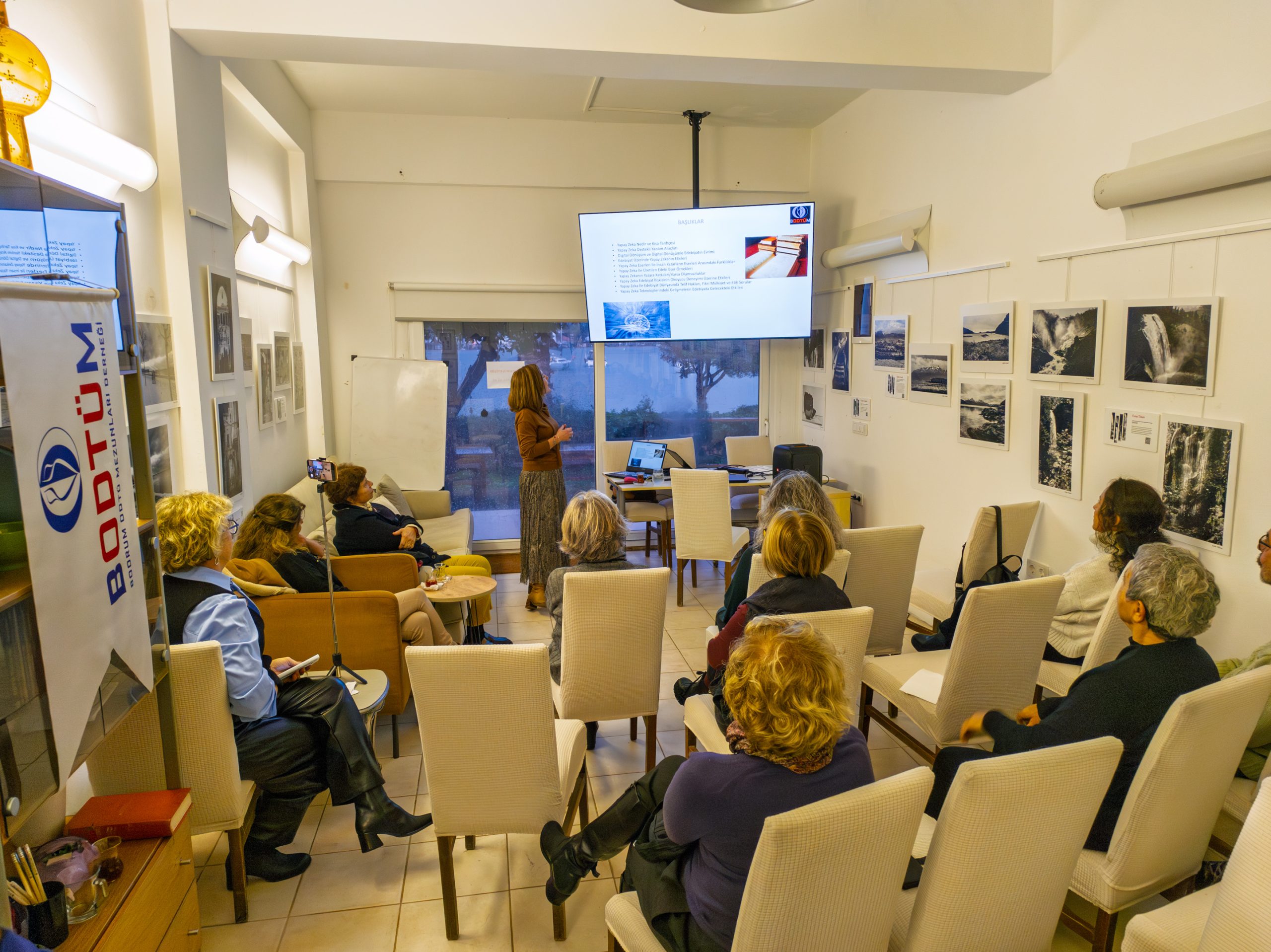 Sunum sonrası bir ürünün yapay zeka mı, gerçek mi olduğu nasıl ayrılabilir; yapay zeka insan gücünü ele geçirip işsizliğin çoğalmasına mı neden olacak gibi konularda tartıştık.